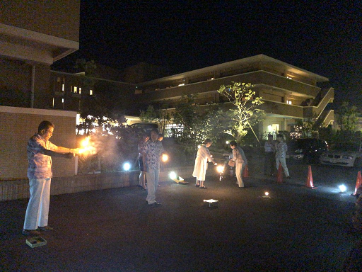 夕涼み会は中々イベントを行えない時間帯の夕食後にご入居者の方と花火を行いました。