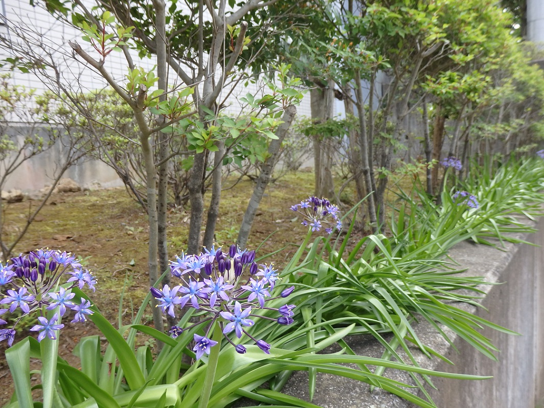 桜の花が終わった頃、ケア棟道路沿いに綺麗な花が今年も咲きました。