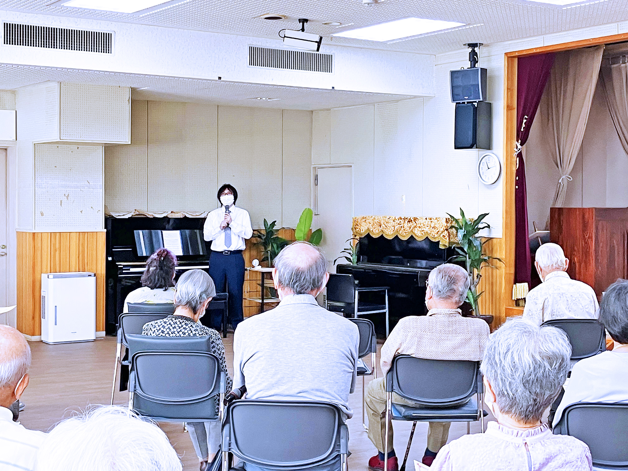 菅原都々子さんの「月がとっても青いから」をピアノの伴奏でご入居者の皆様も大きな声で歌い