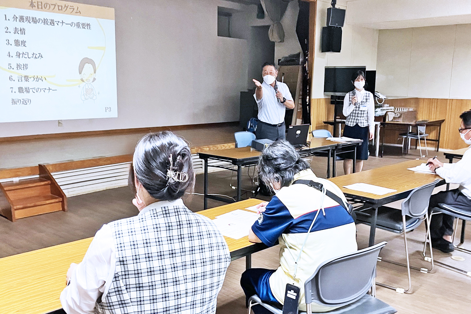 職員が講師を務め、マナーや身だしなみ、言葉遣いについて改めて確認を行いました。