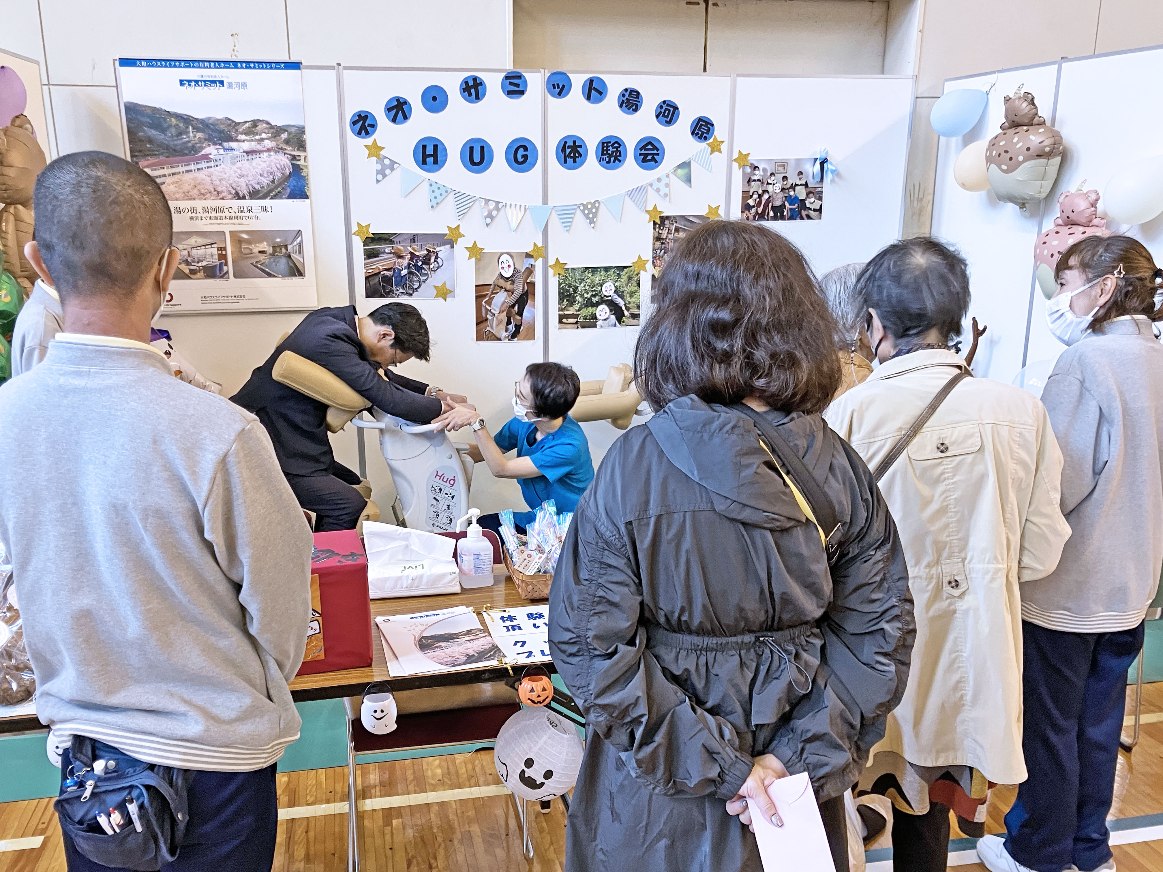 当館ブースでは、移乗ロボットHUGを活用した足腰に負担の掛からない移乗介護をご紹介しました。