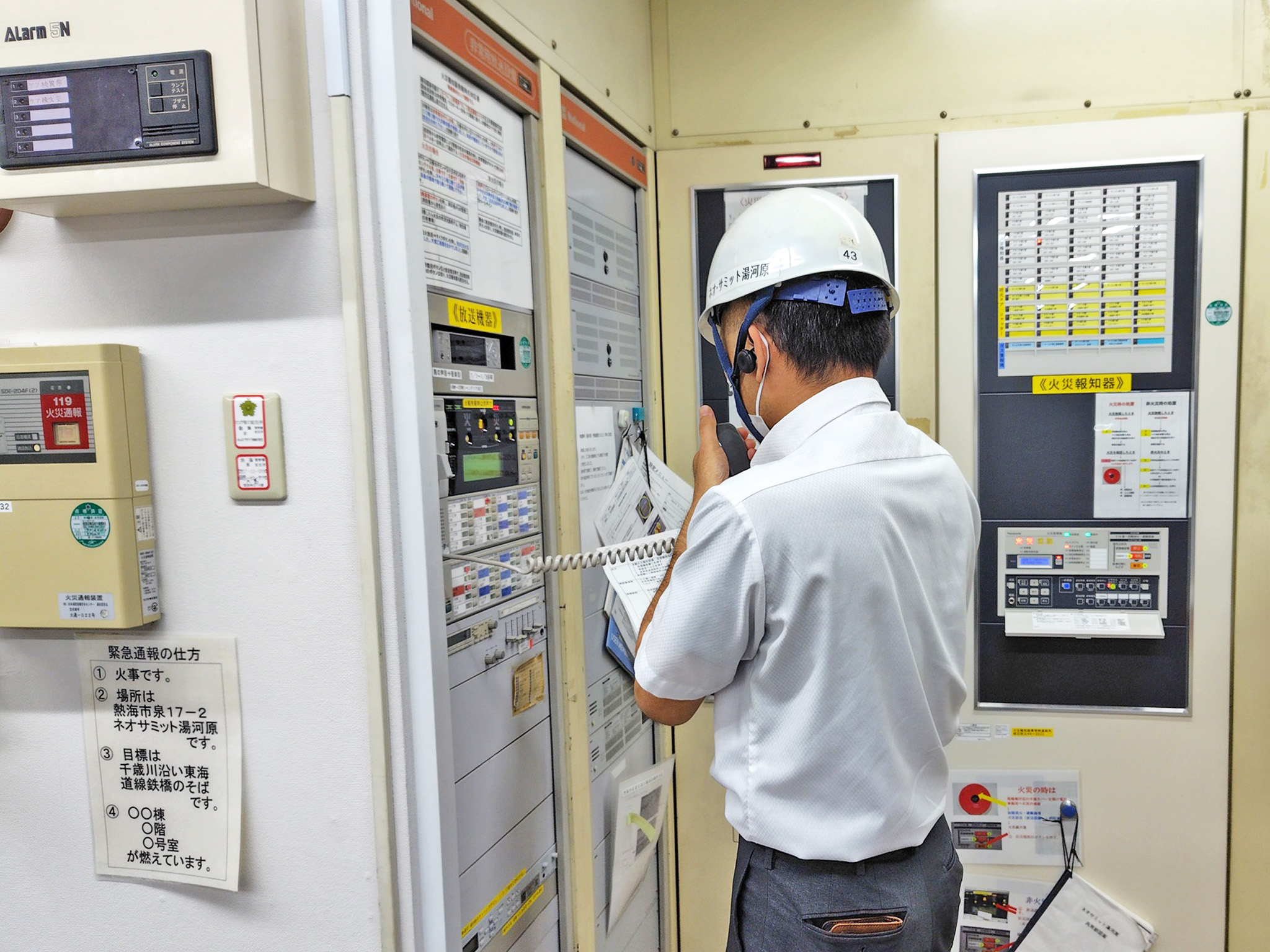 この日、ネオ・サミット湯河原では夜間を想定した防災訓練を実施しました。