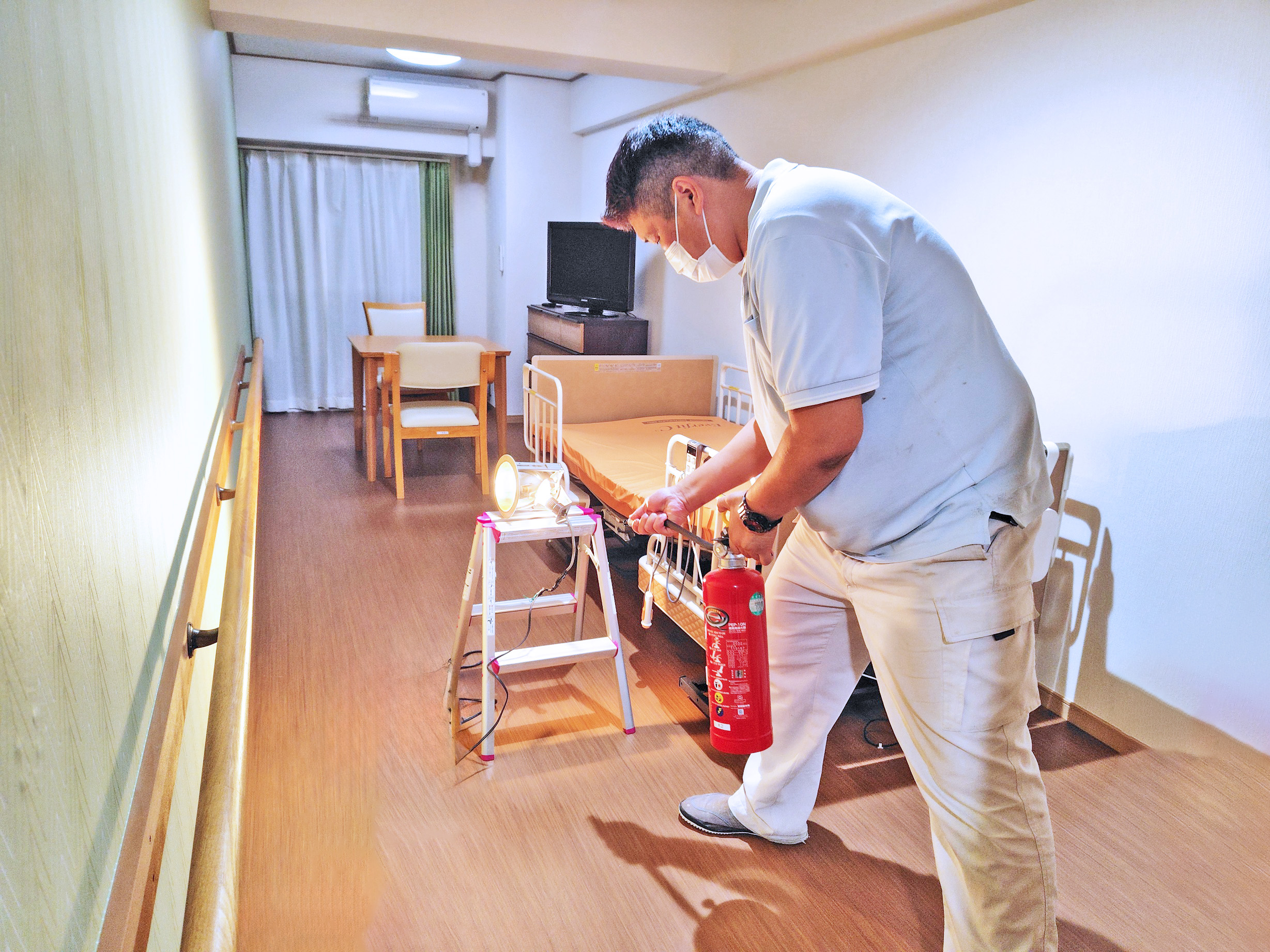 ナイトフロントと夜勤者のケアスタッフを中心に、緊急放送や消火訓練
