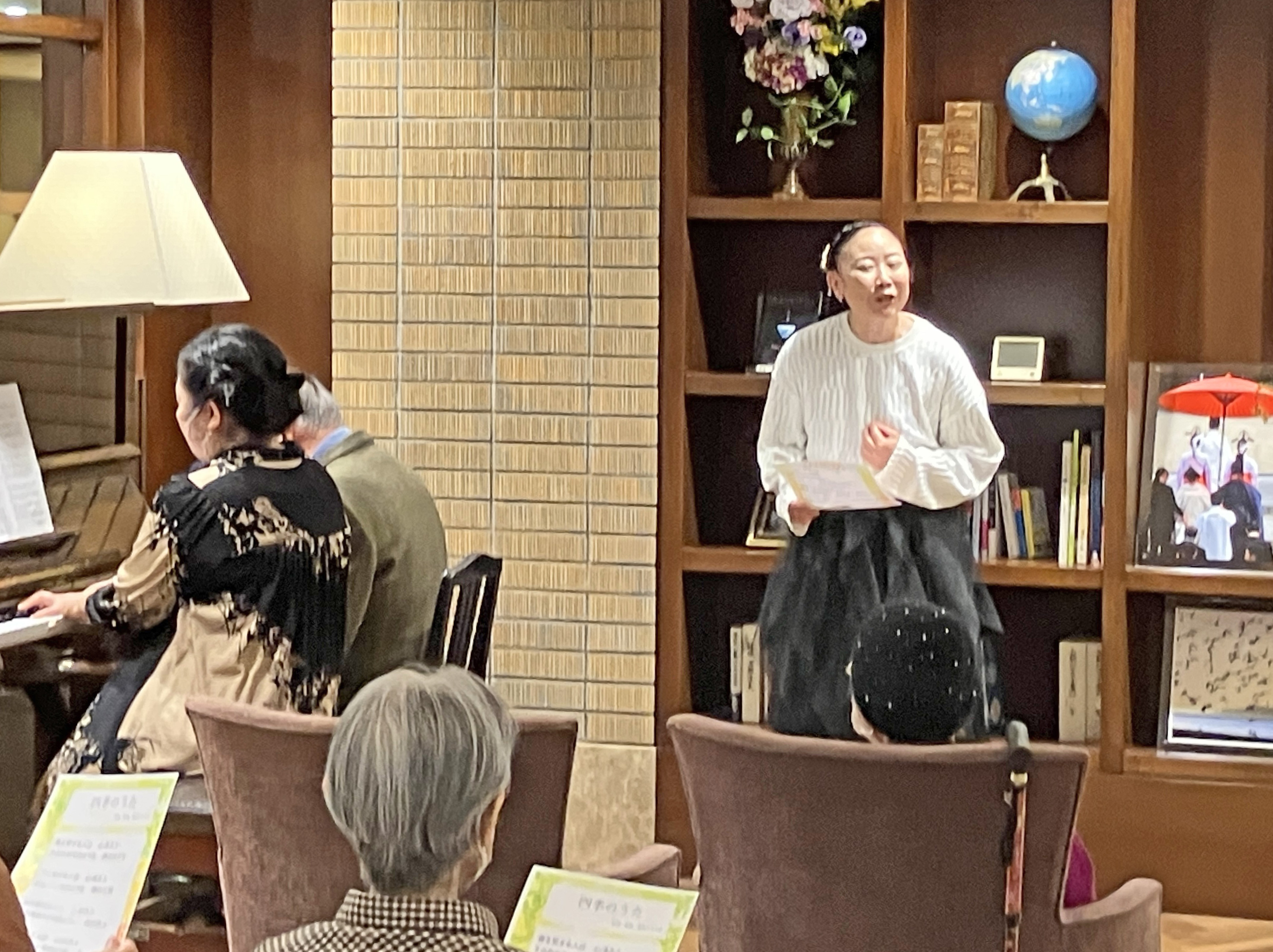 さらに、ご入居者と先生によるピアノの連弾や、当館スタッフによる歌の披露もあり