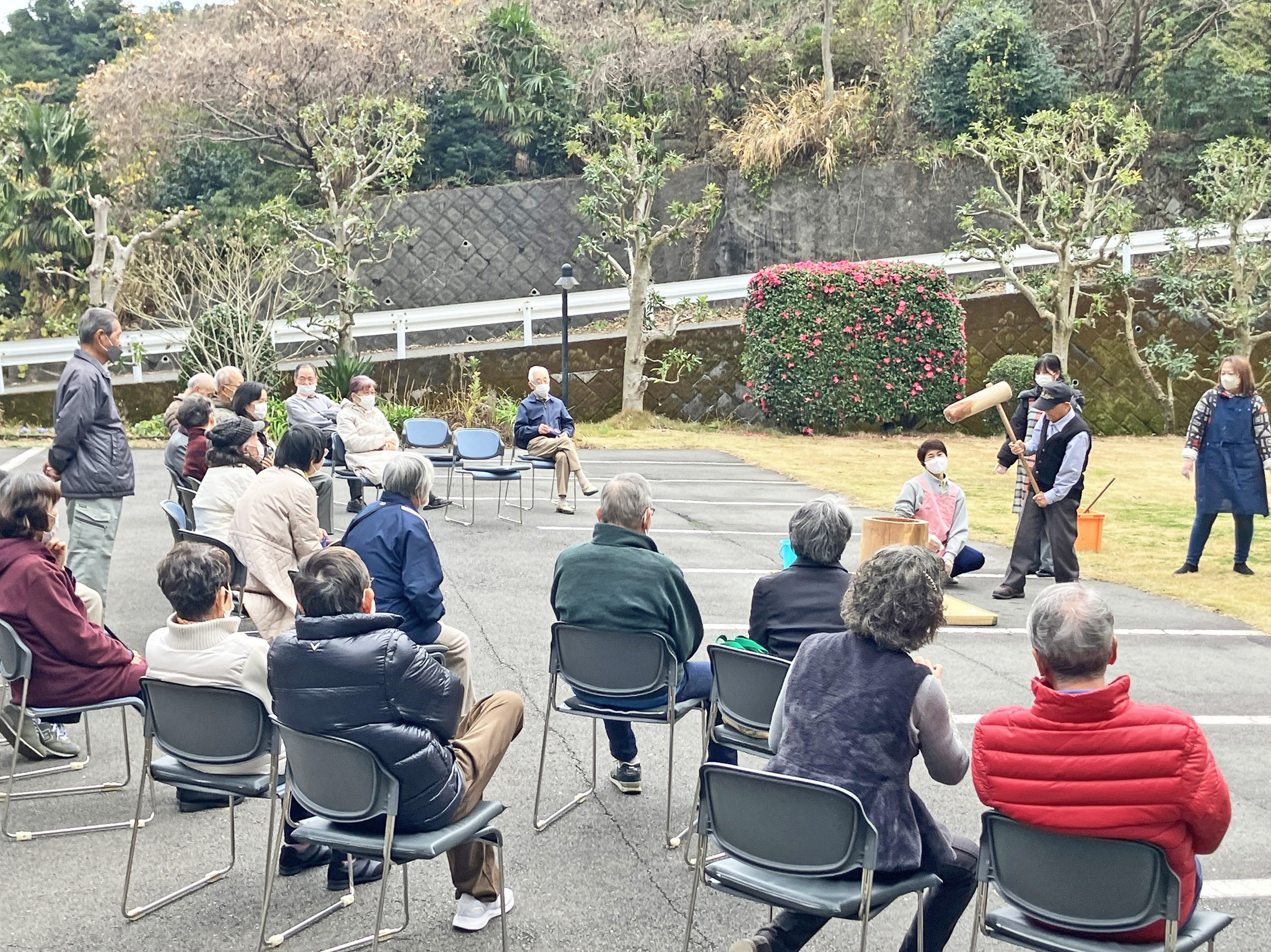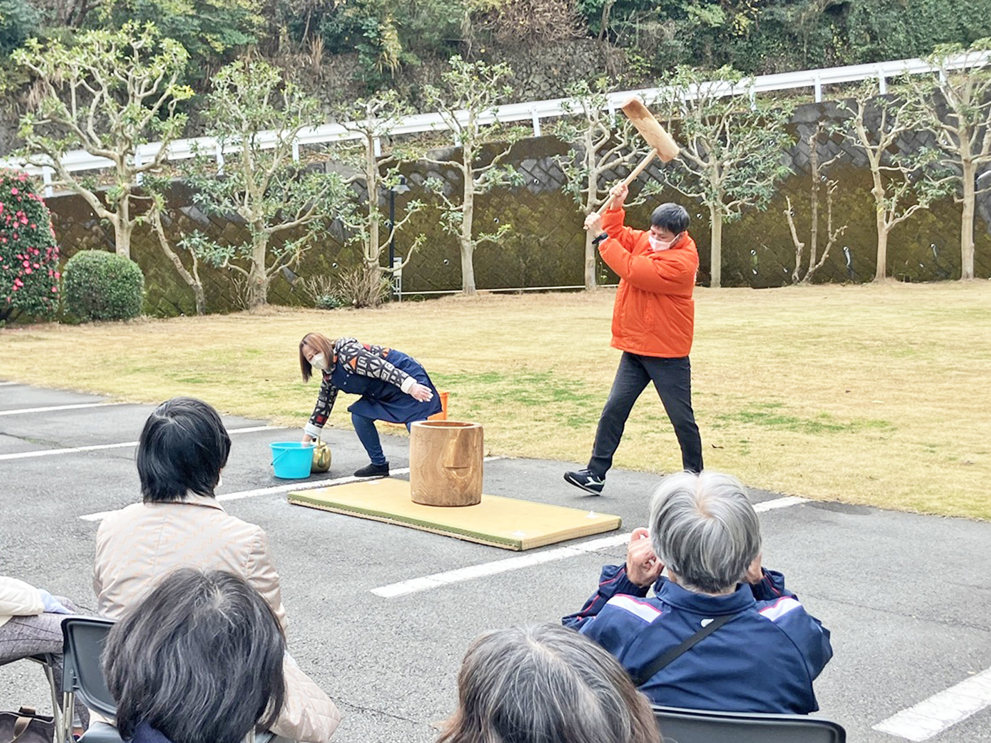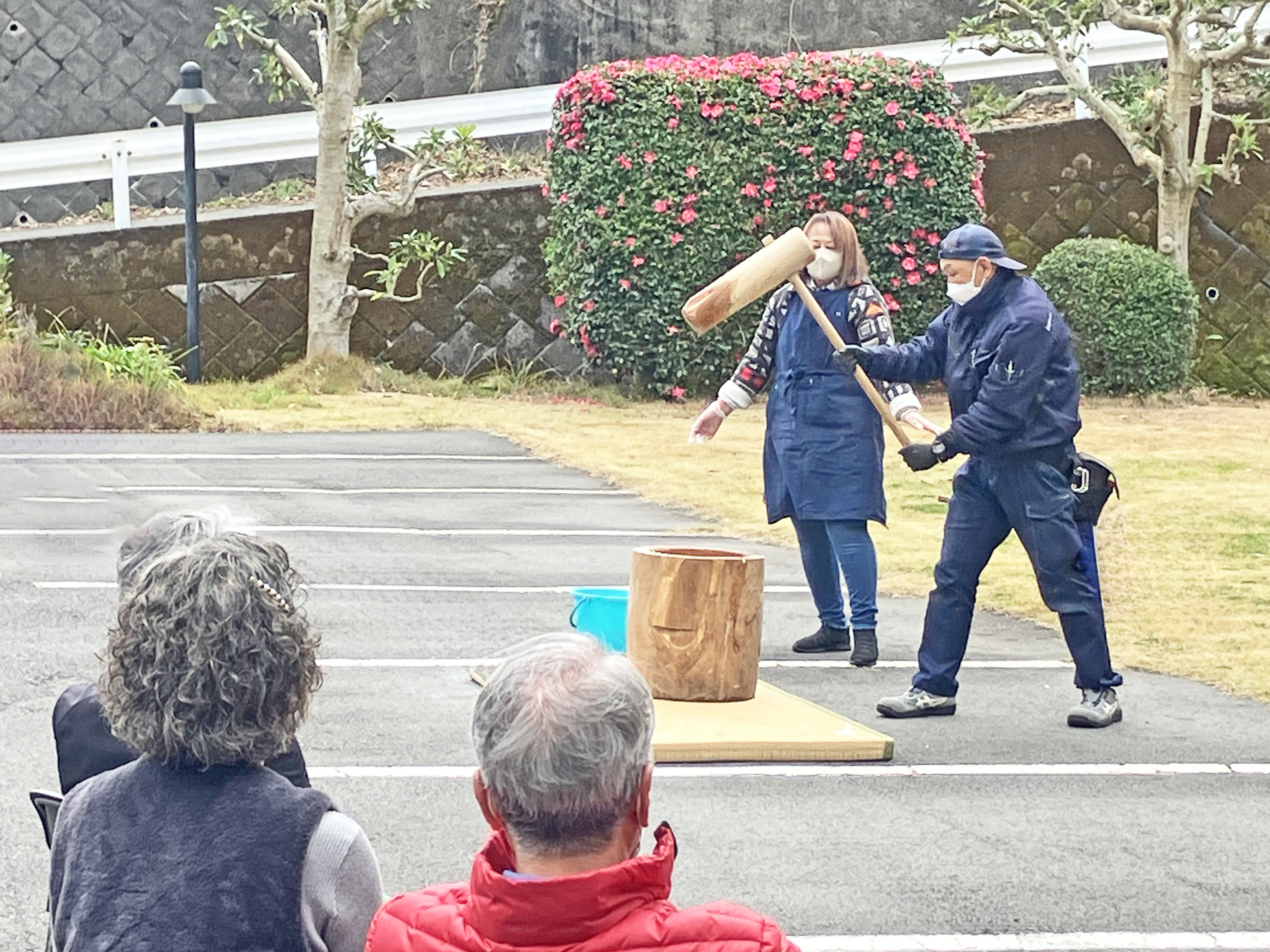 この日、ネオ・サミット湯河原では恒例の「餅つき」を開催いたしました。