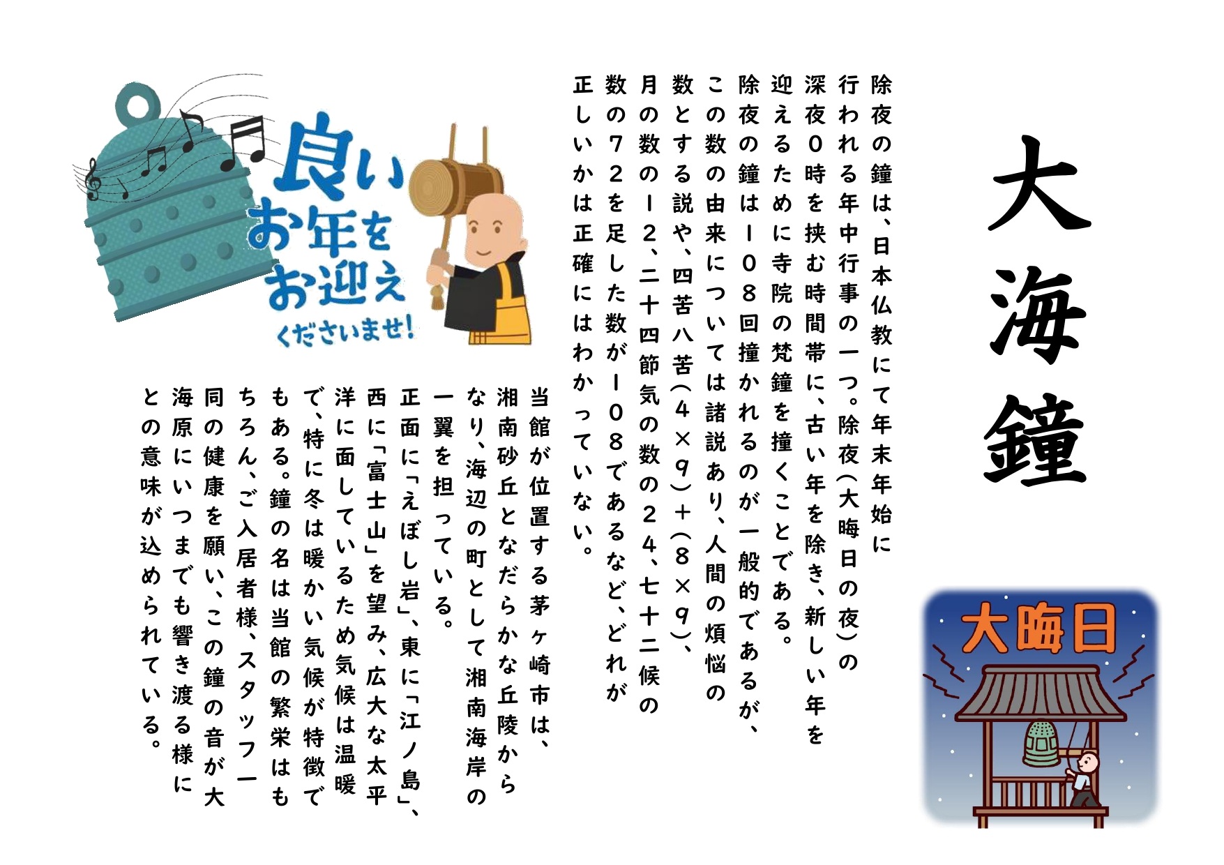 近隣への配慮などから時代と共に除夜の鐘の音はだんだんと聞かれなくなってしまいました。