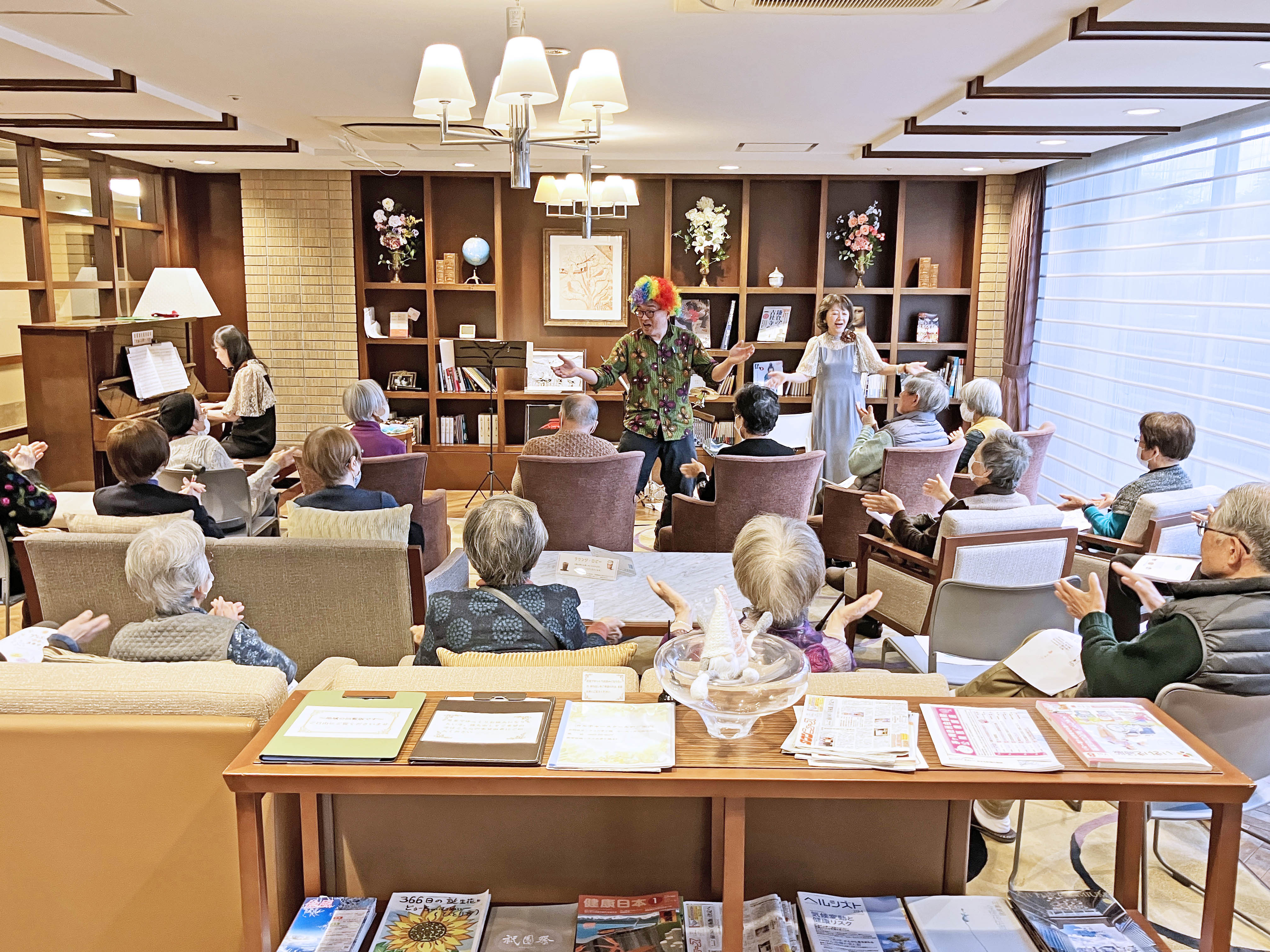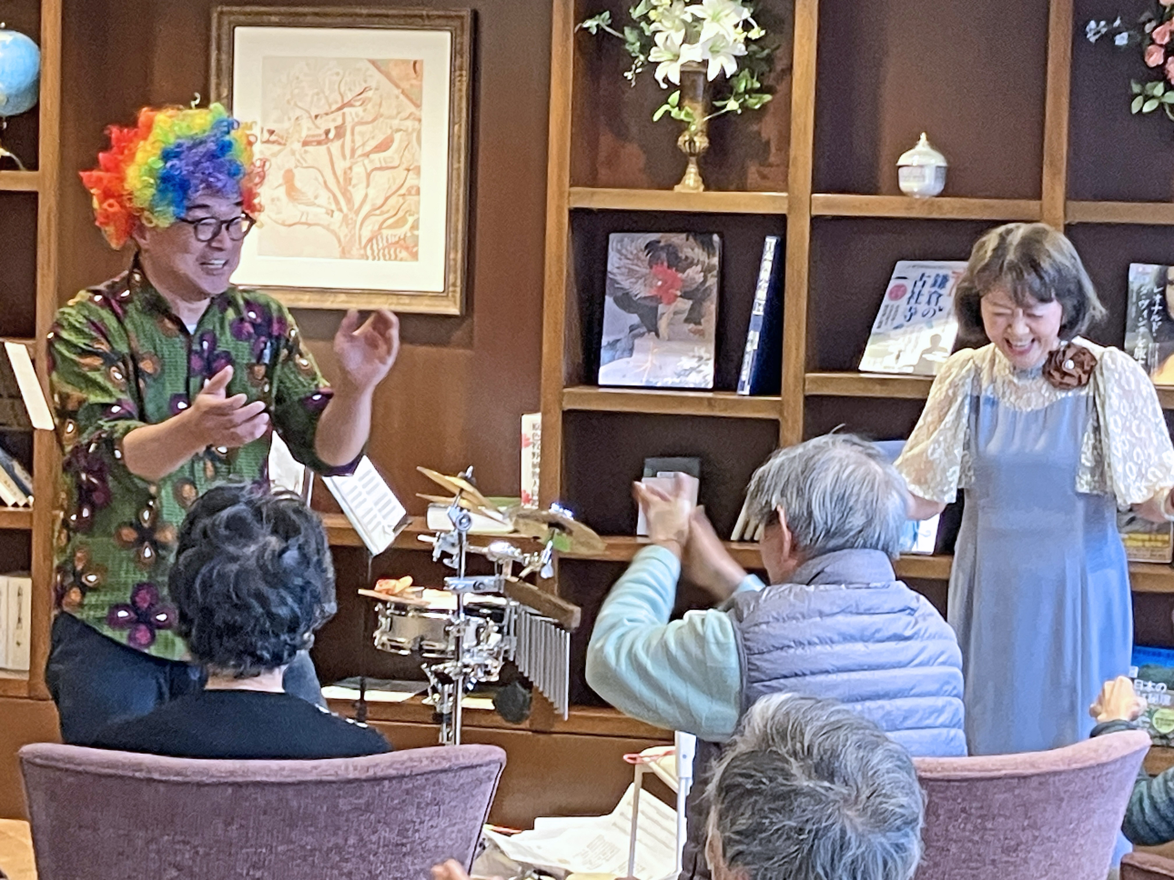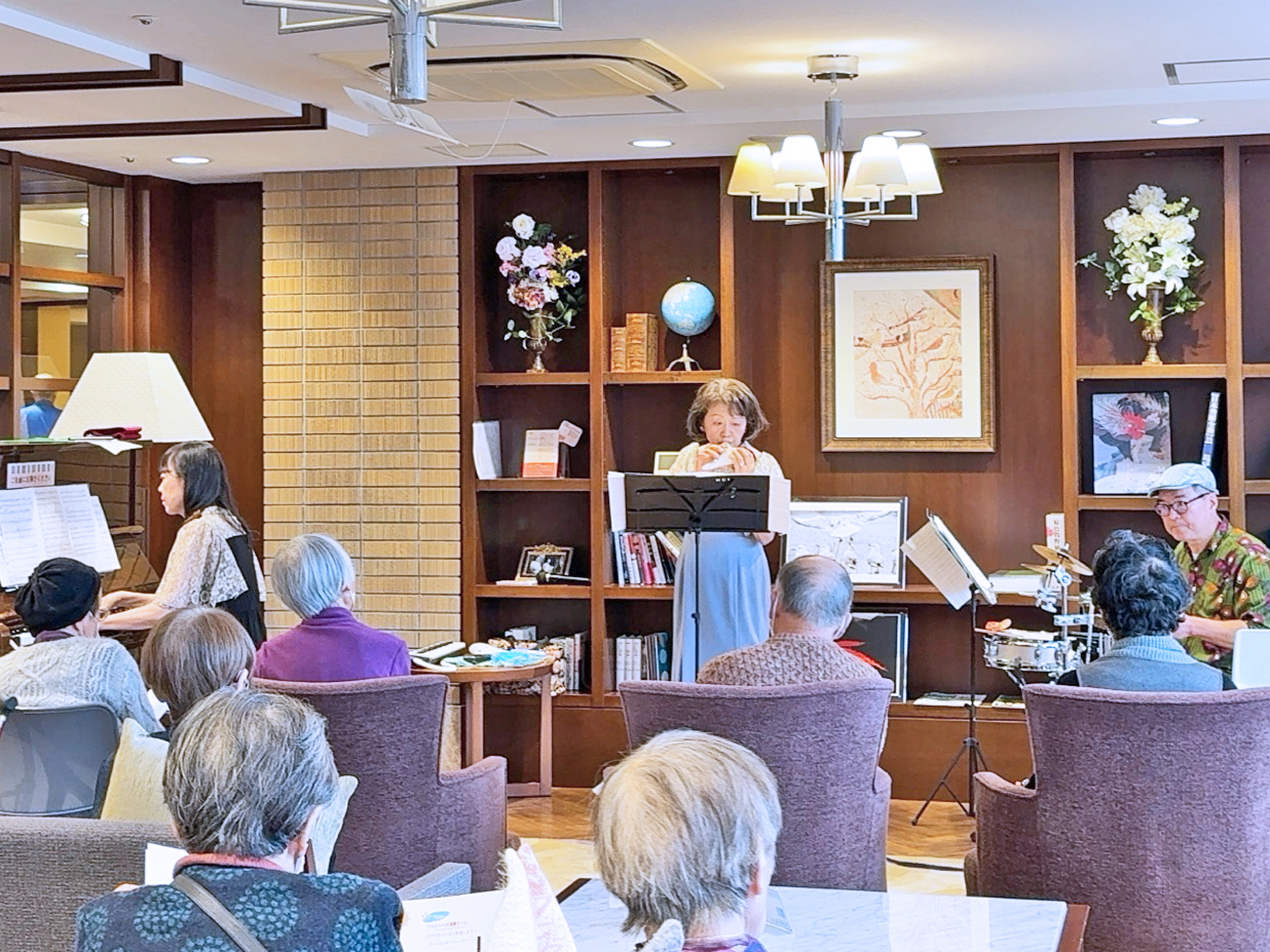 参加されたご入居者は演奏を聴きながら歌ったり、マラカスを振ったりと、楽しいひと時を