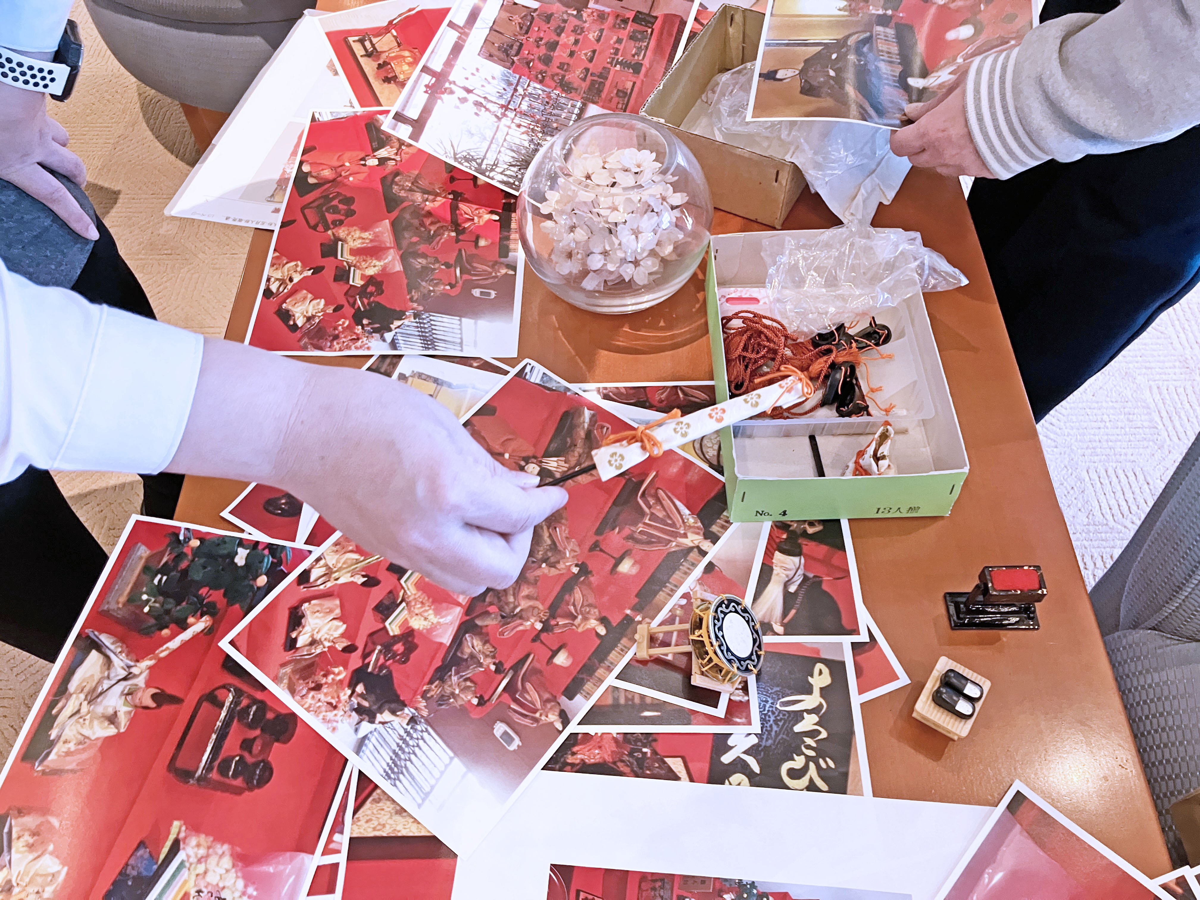 スタッフ同士が見本写真と見比べながら、「この並びで合っているかな?」などと相談しつつ