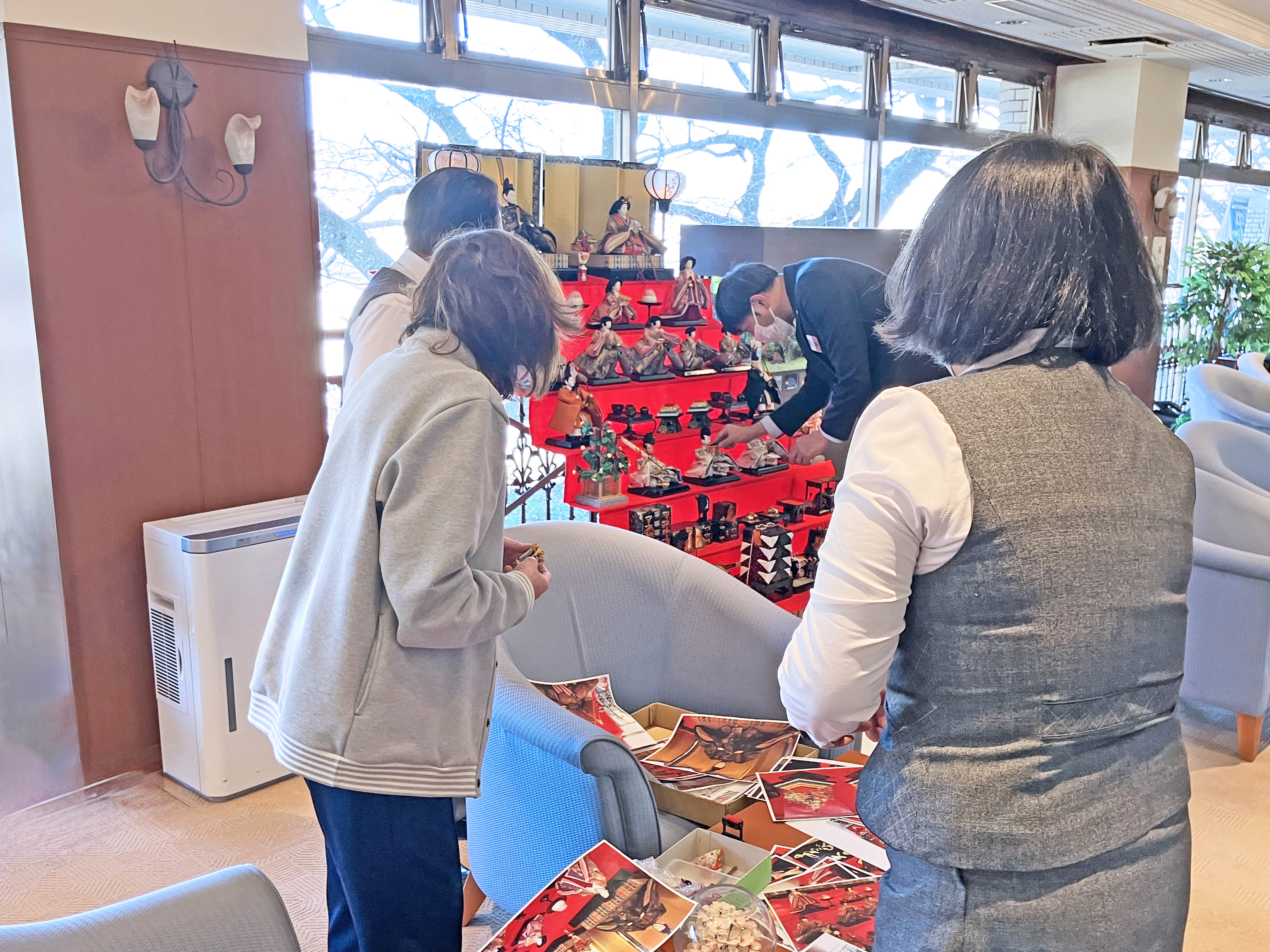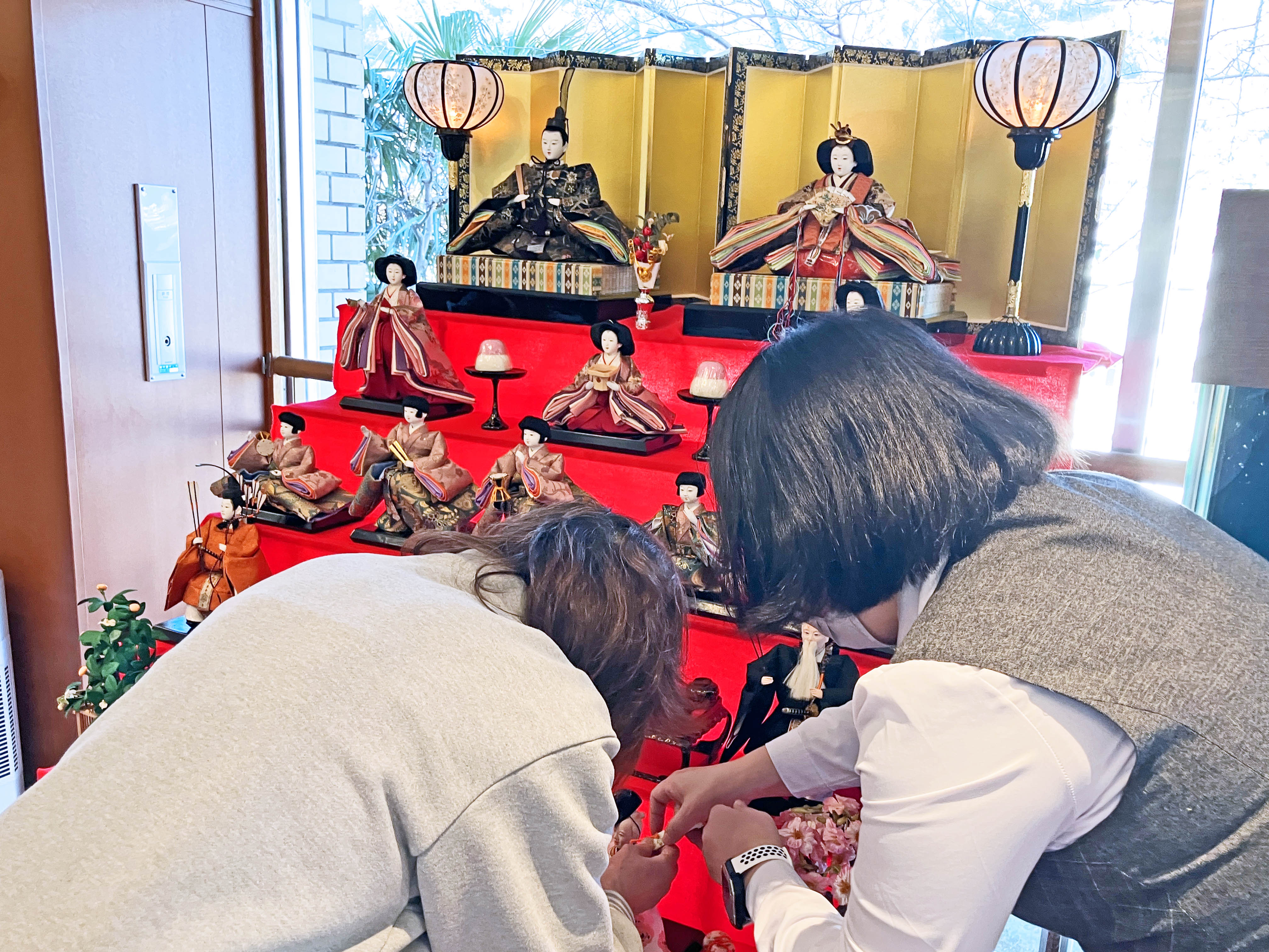 ひとつひとつの人形を並べるたびに、早春の訪れを感じて心が弾み、フロント前が一気に