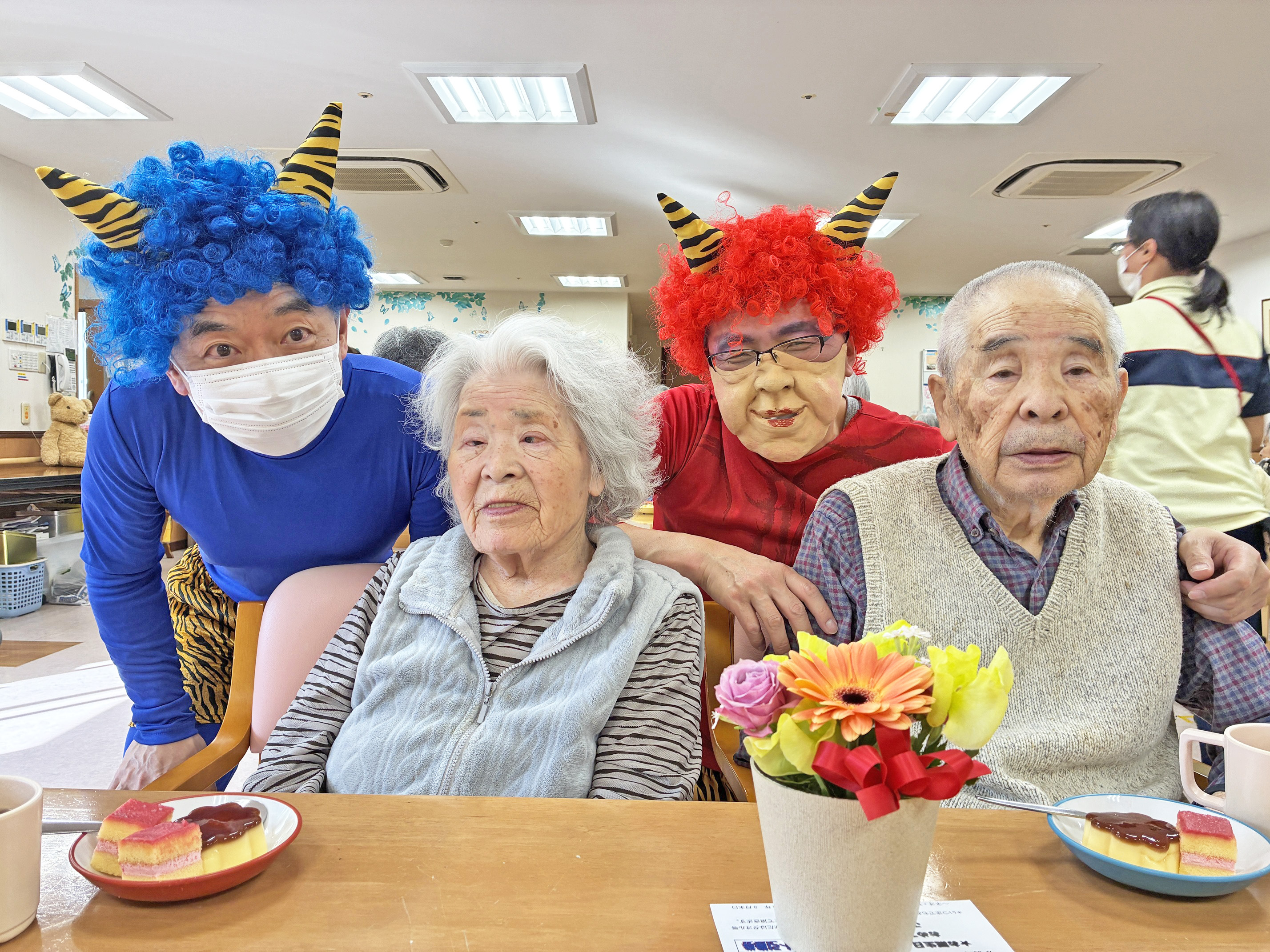 ゲームを楽しんだ後には、お誕生日お祝いにお花をお渡しし、他のご入居者と一緒に