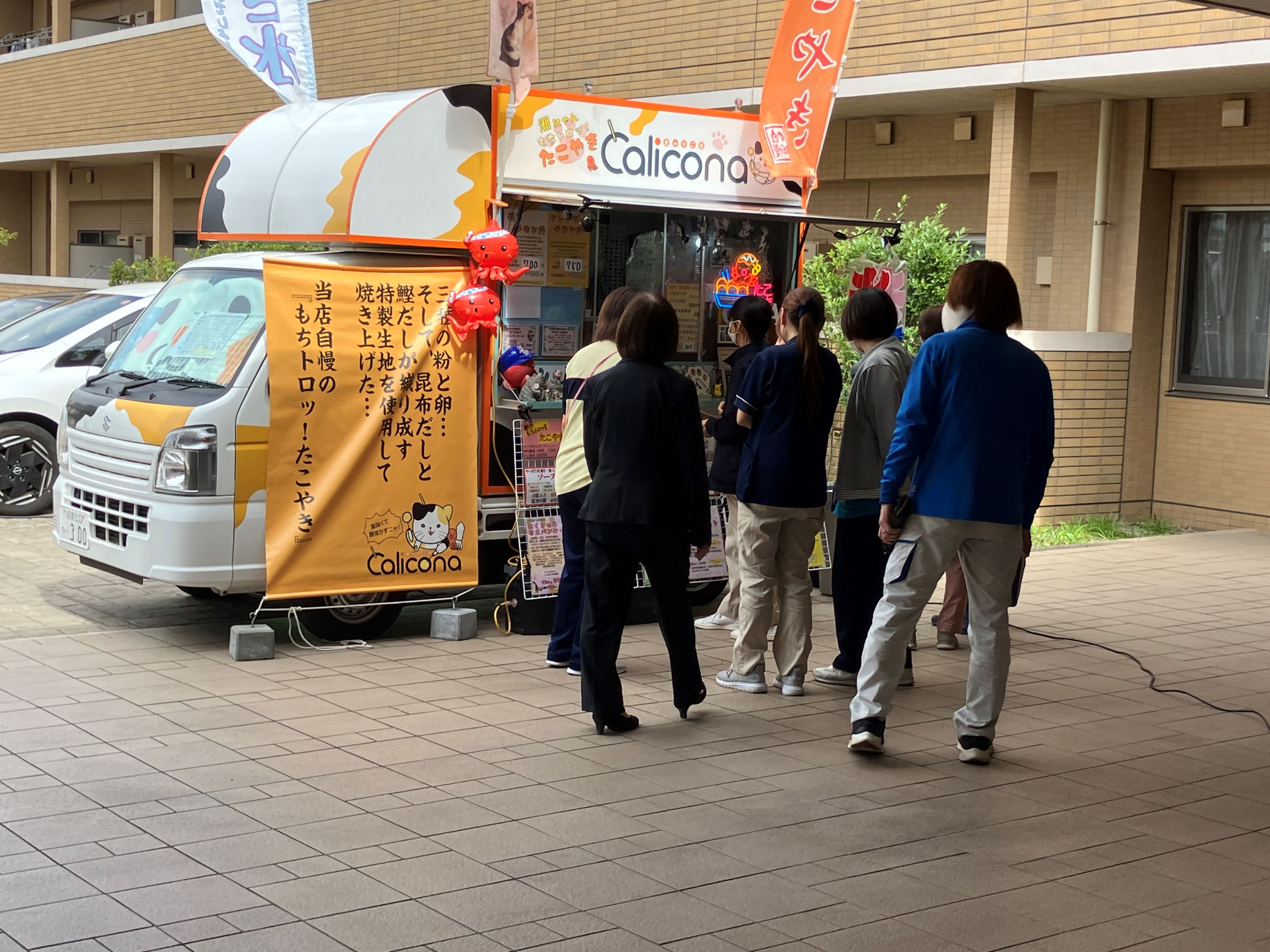 今月は、2店舗のキッチンカーにお越しいただきました。「きゃりこな」さんは、カレー塩味や出汁醤油味などのたこ焼きをはじめ、可愛らしい肉球型のミニパンケーキなどもご用意していただきました。