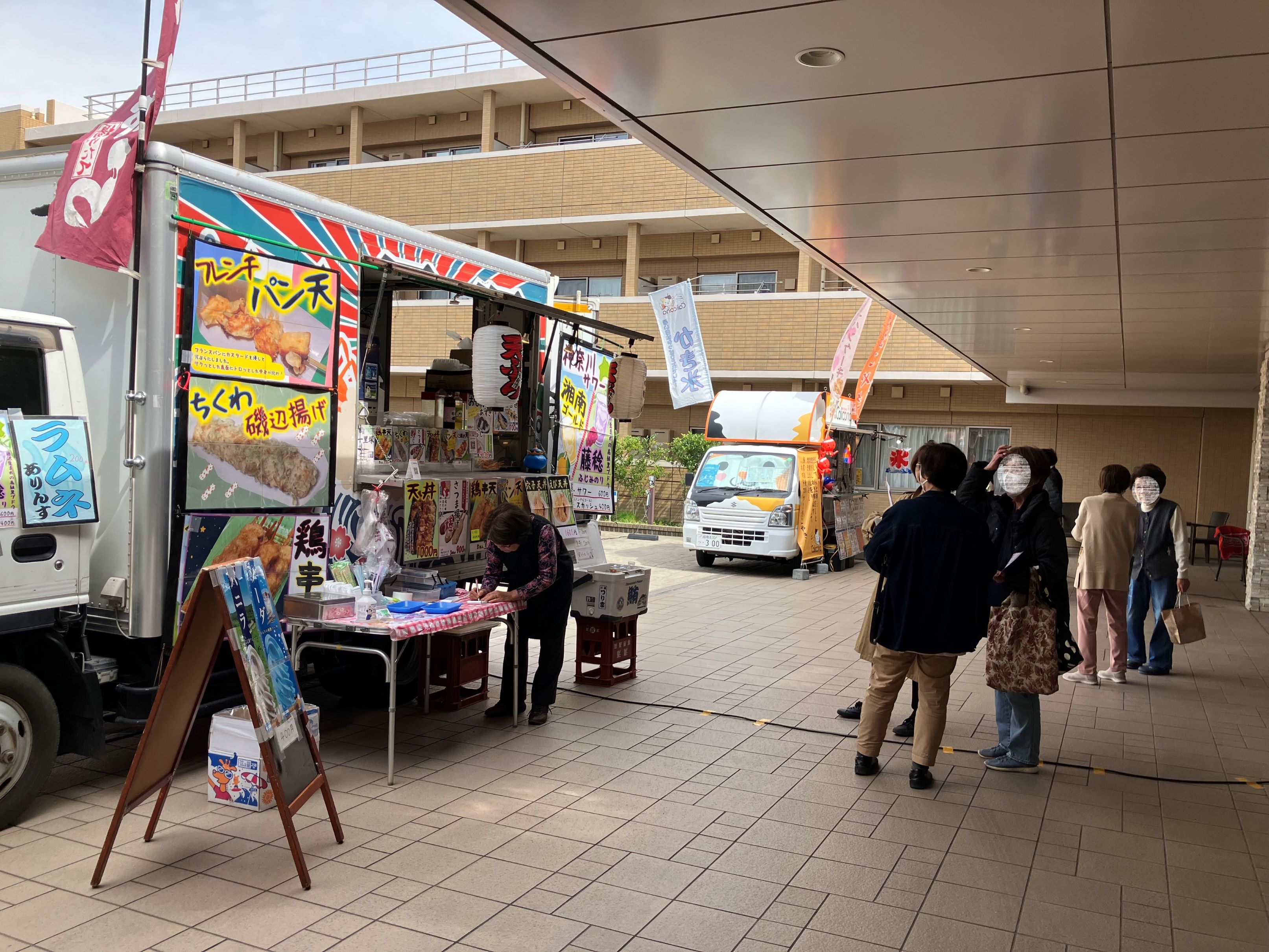 「一里塚」さんは、天ぷらなどの揚げ物のさまざまなお料理がありました。アツアツできたてのお料理を、ご入居者をはじめ、近隣の方々も楽しむことができました。今後もいろいろなキッチンカーをお招きし、ご入居者や近隣の方々に楽しんでいただけたらと思います。