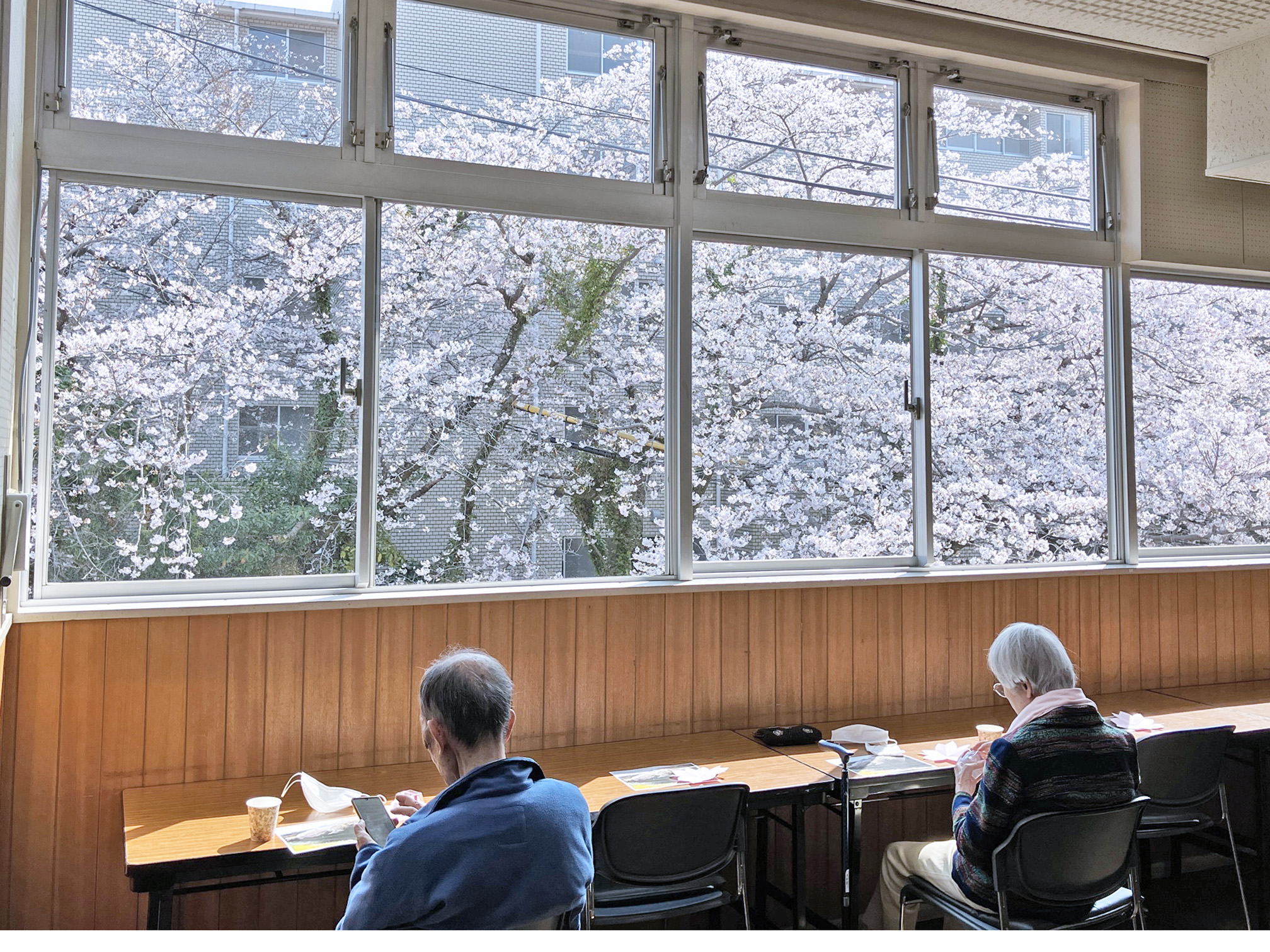 大きな窓から眺める満開の桜は、まるで一枚の絵画のようで、室内にいながらも