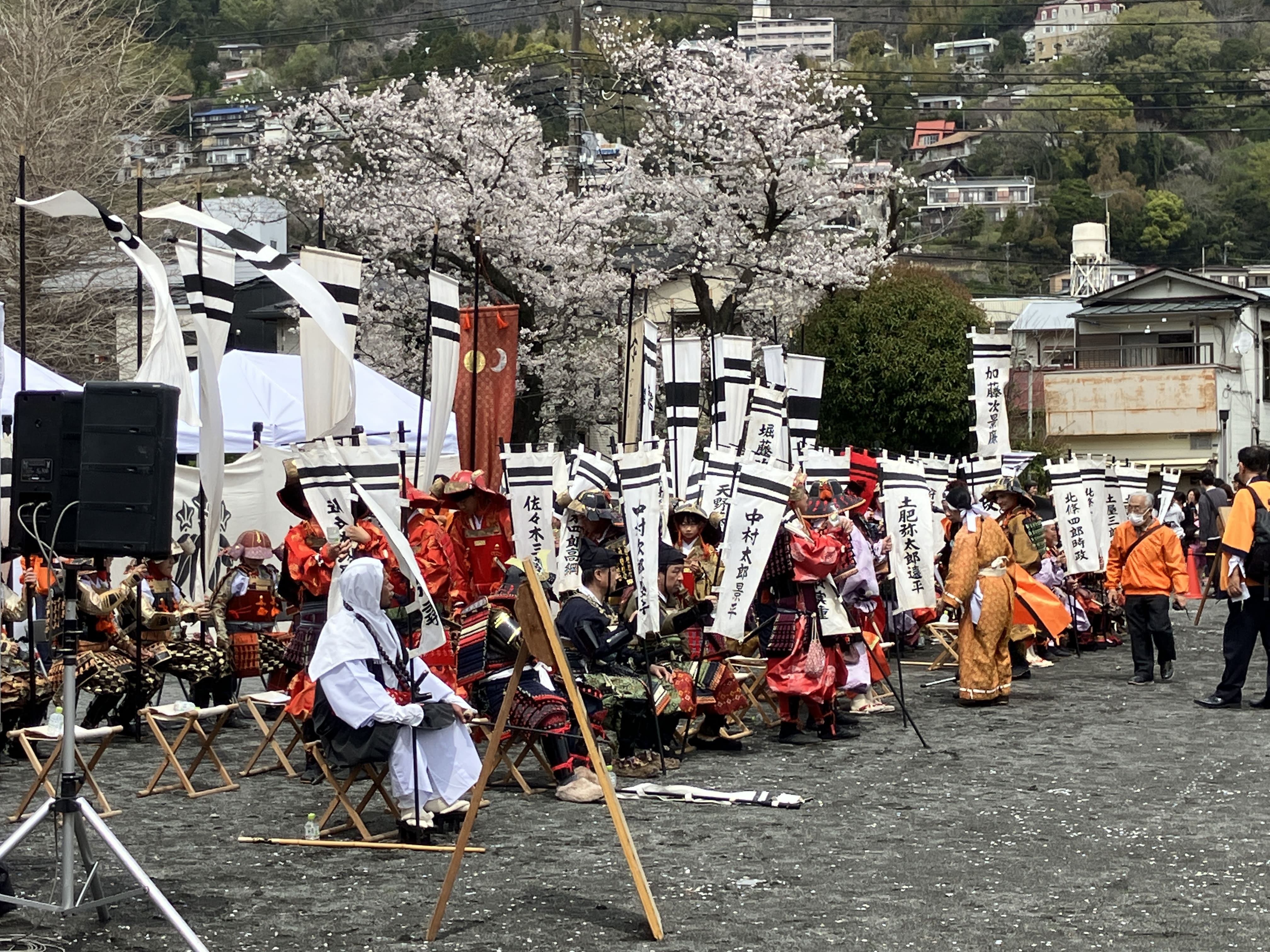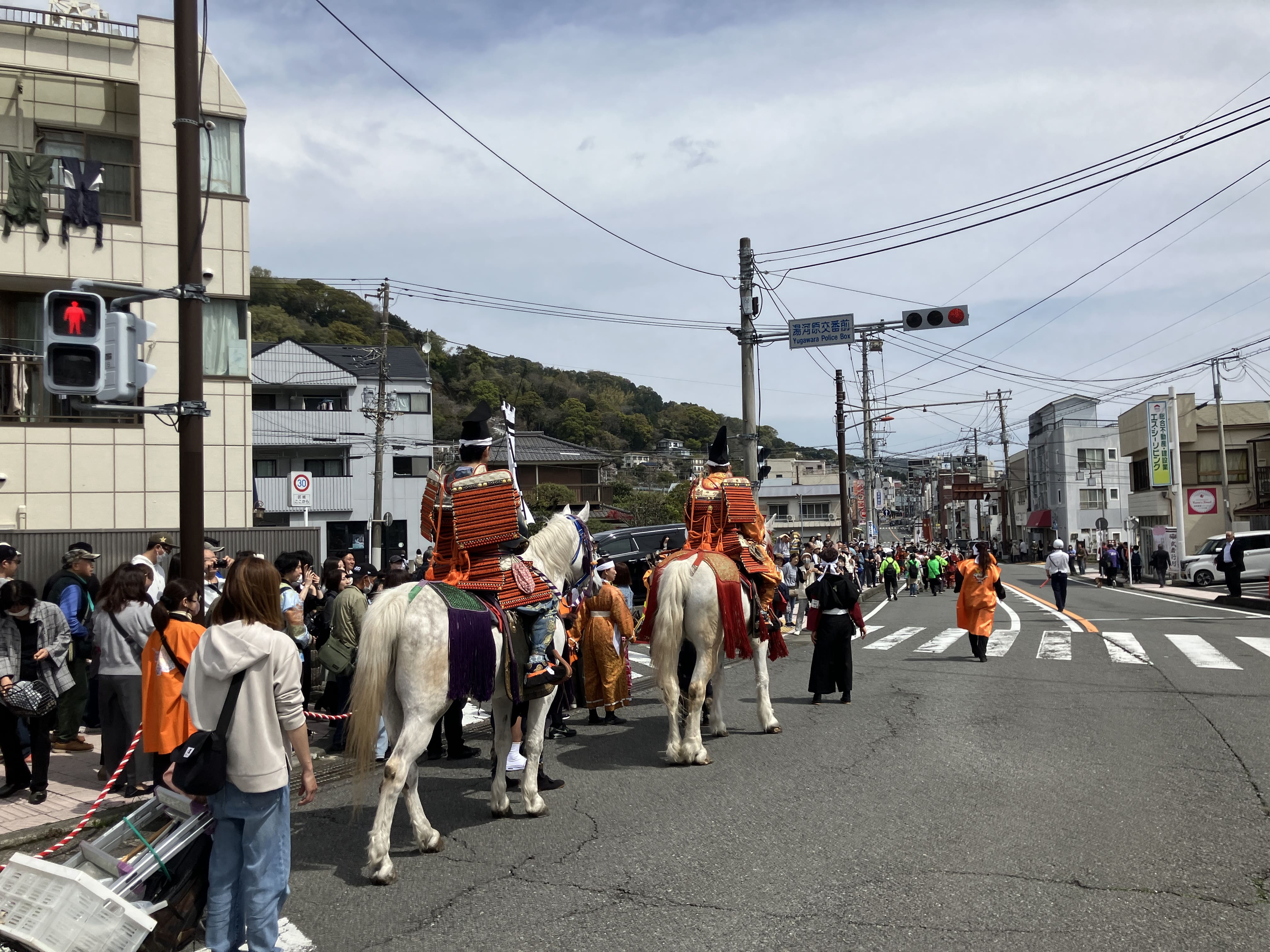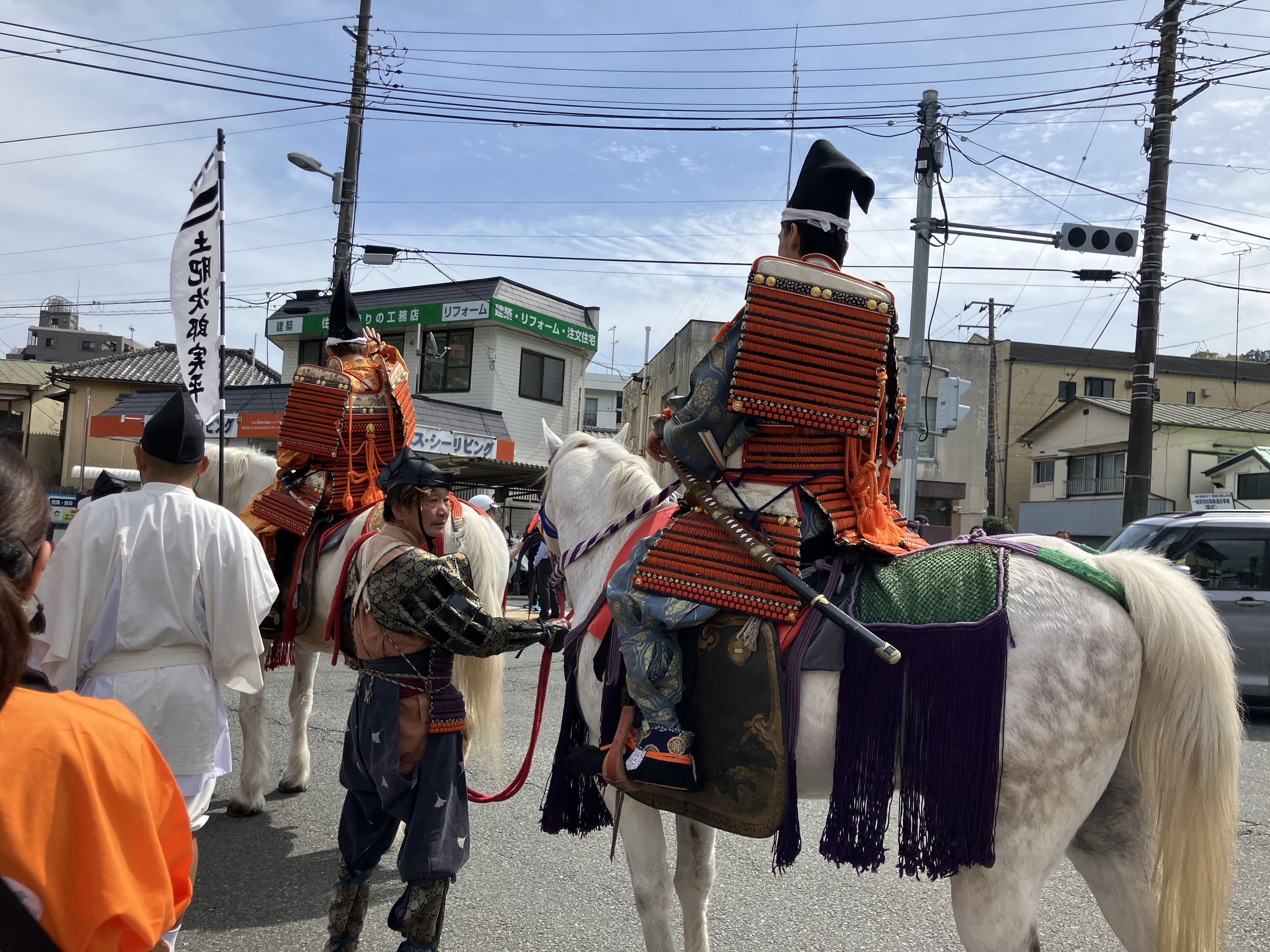 源頼朝公と地元の名士、土肥実平公に扮した2名が馬にまたがり