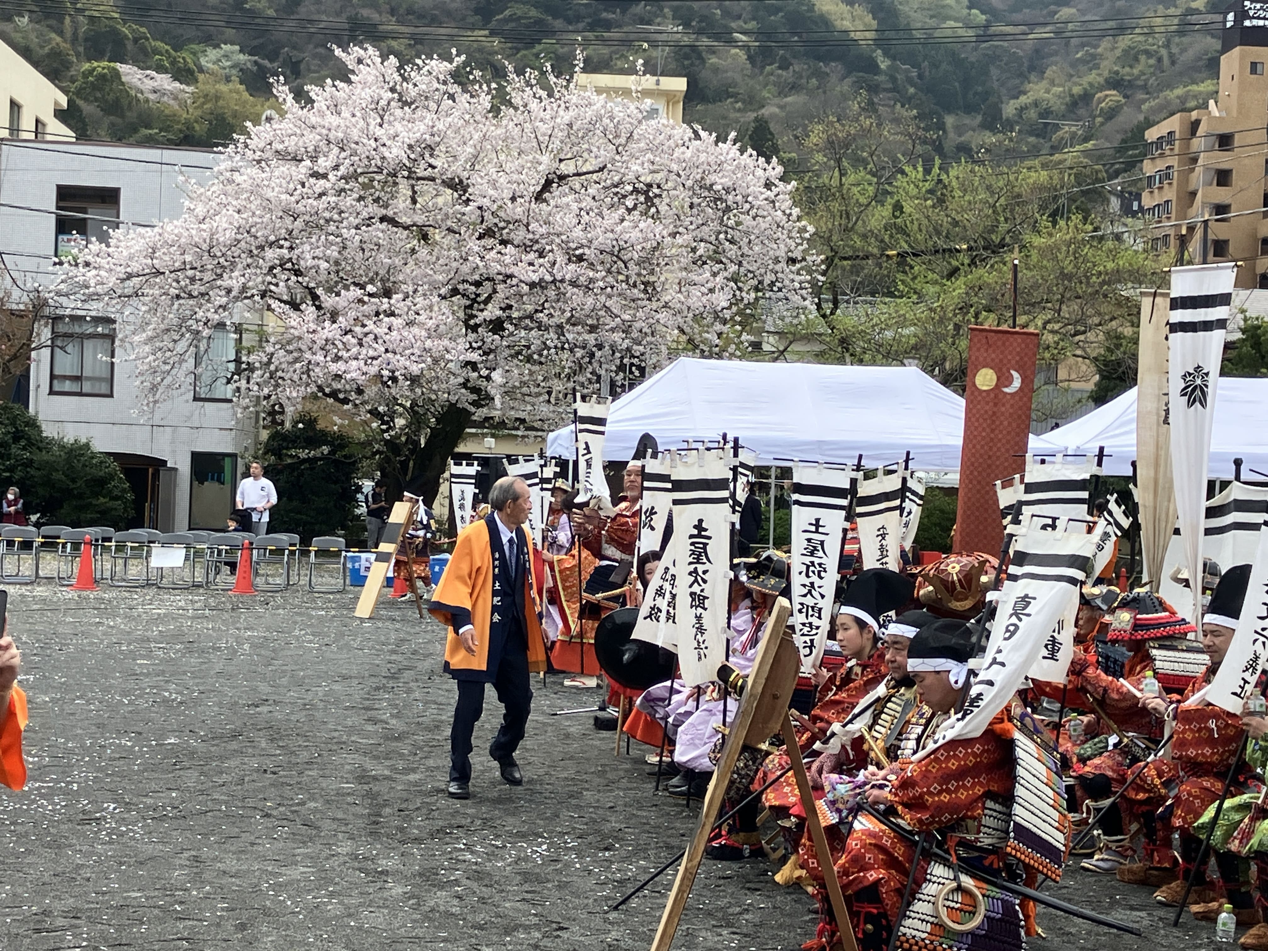 ゴール地点の桜の花びらの残る公園では旗揚げ式も行われました。