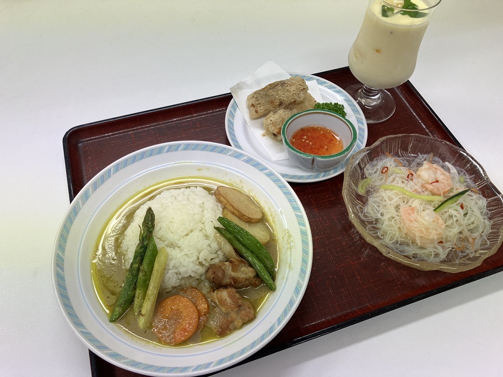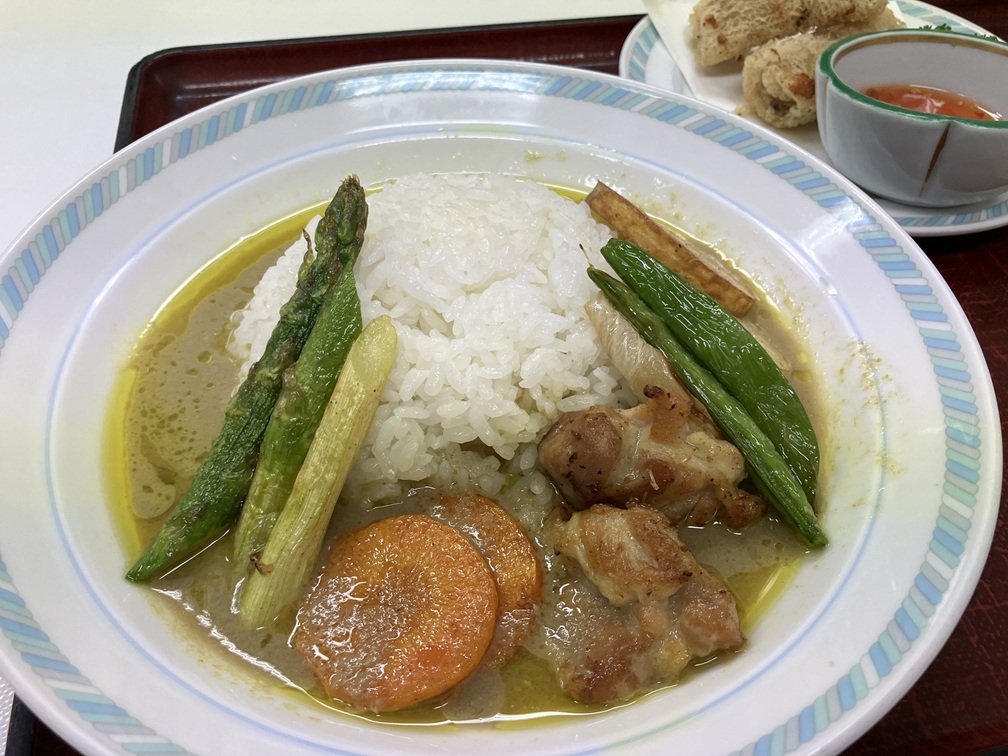 グリーンカレーはアスパラガスなどの春野菜とよく合い、ココナッツの甘みが感じられ、美味しかったです。